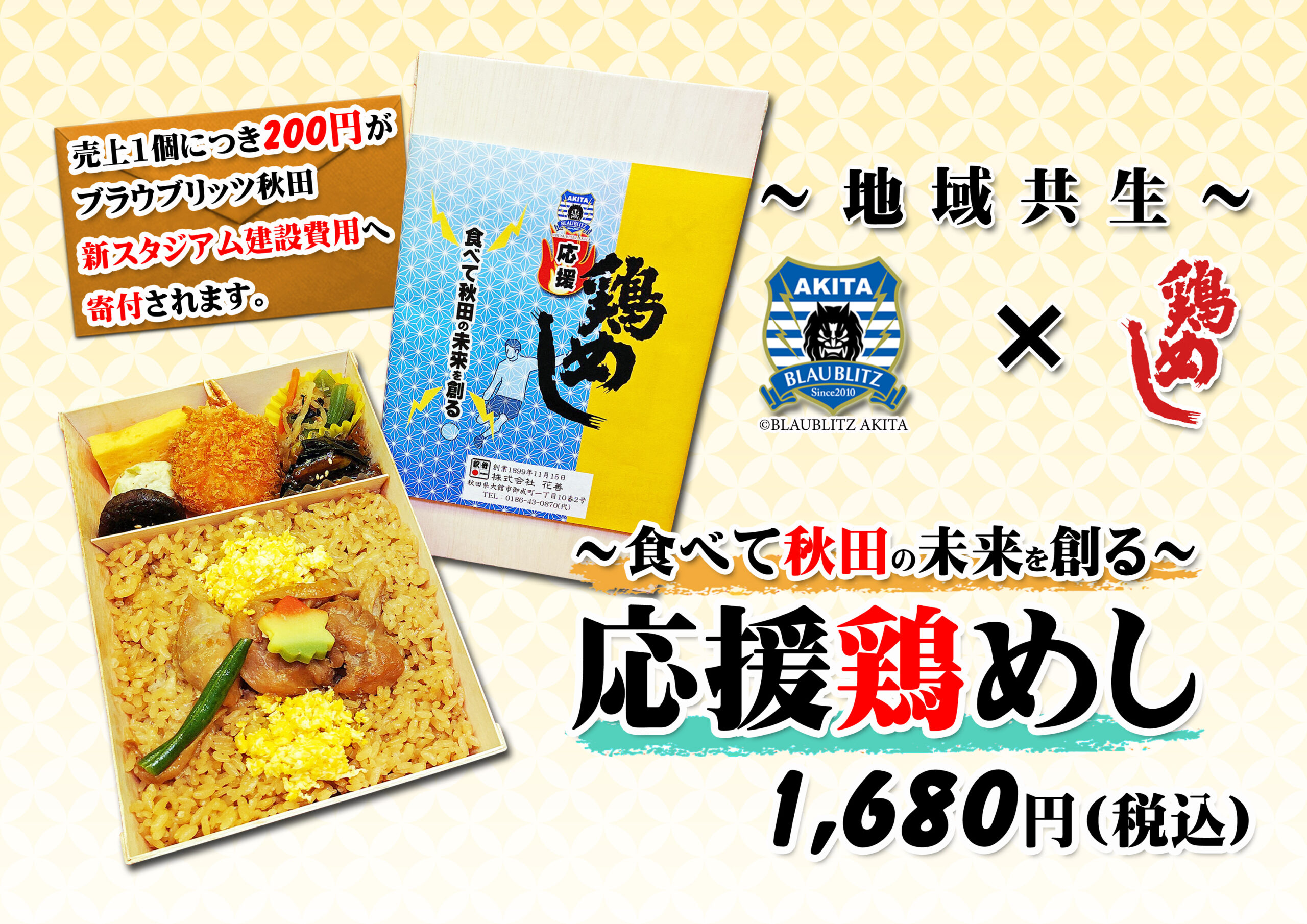 地域共生プロジェクトの一環として「応援鶏めし」(ブラウブリッツ秋田仕様)限定販売を開始します。