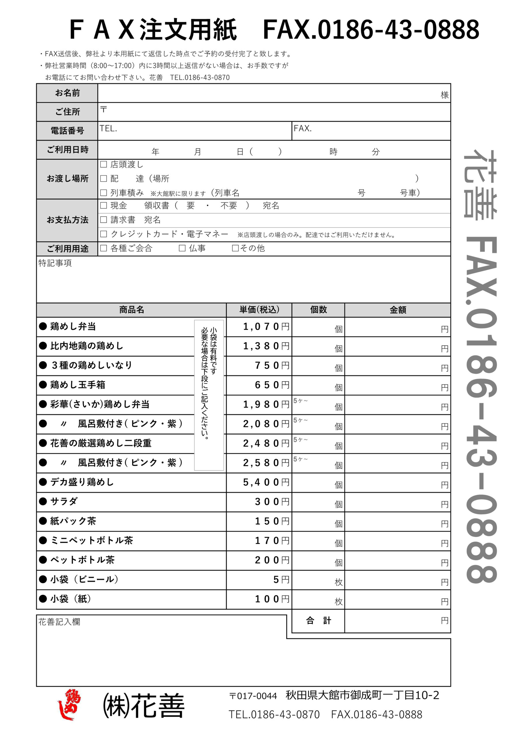 鶏めしの花善からお知らせ